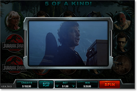 The game layout plays homage to the movie, featuring an eerie jungle scenery set to a seriously suspenseful soundtrack. Symbols are made up of the movie’s characters (Sam Neil, Jeff Goldblum, Richard Attenborough and Laura Dern) along with those epic dinosaurs (T-Rex, Velociraptor, Dilophosaurus, Triceratops and Brachiosaurus). If you love this game for no other reason, you’ll love it for the graphics alone.